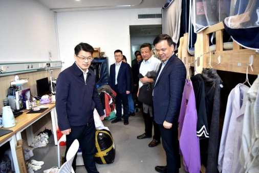胡国珍一行实地走访了学生公寓、自习室、教学区,详细了解学生的学习与生活状况,与实习生亲切交流。他鼓励学生主动学习,以精益求精、潜心钻研、勇攀医学高峰的严谨治学态度,严格要求自己,学会利用现代信息技术赋能学习,正确处理好实习与考研、就业的关系,努力成为一名医德高尚、医术精湛的高素质医学人才。