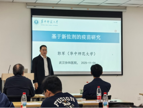 本次交流会邀请了北京大学药学院董甦伟教授以及华中师范大学郭军教授,分别作了《糖多肽自组装的机制与药学应用研究》和《基于新佐剂的疫苗研究》的精彩报告,内容涵盖了糖肽新方法、糖肽类药物的多领域应用等,现场学术氛围浓厚。